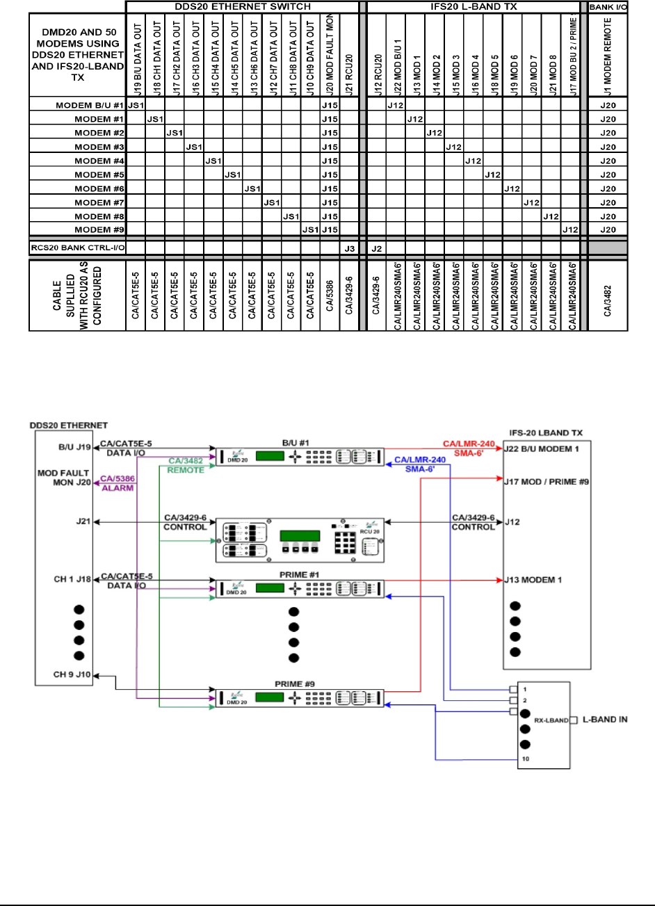 Figure B-19 shows a cable chart for the DMD20-50 units using DDS20 Ethernet and IFS20 L-Band.