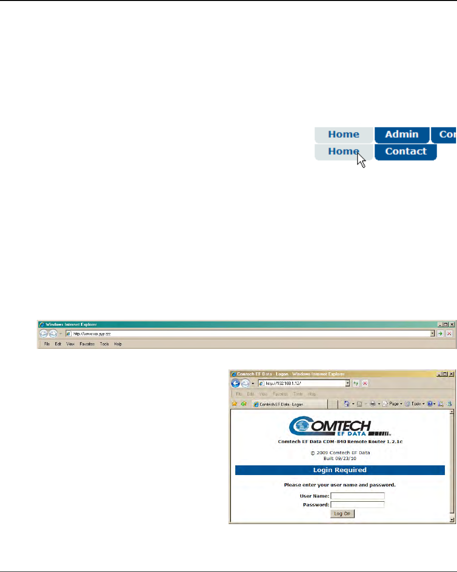 To initiate a Web session with the CDM-840 Remote Router, from the PC type