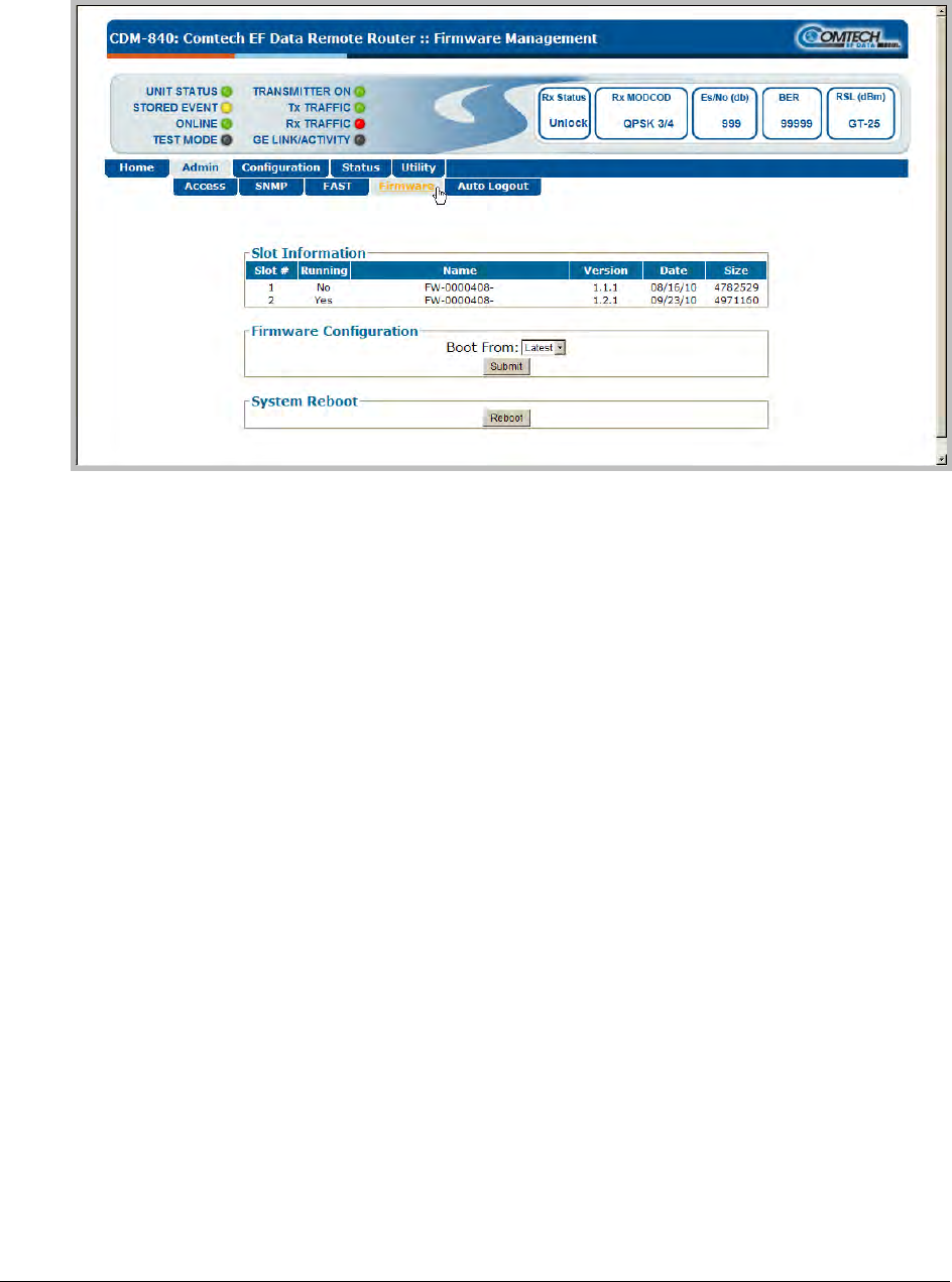 The ‘Admin | Firmware’ page (Figure 5-6) is used to select the current active firmware image