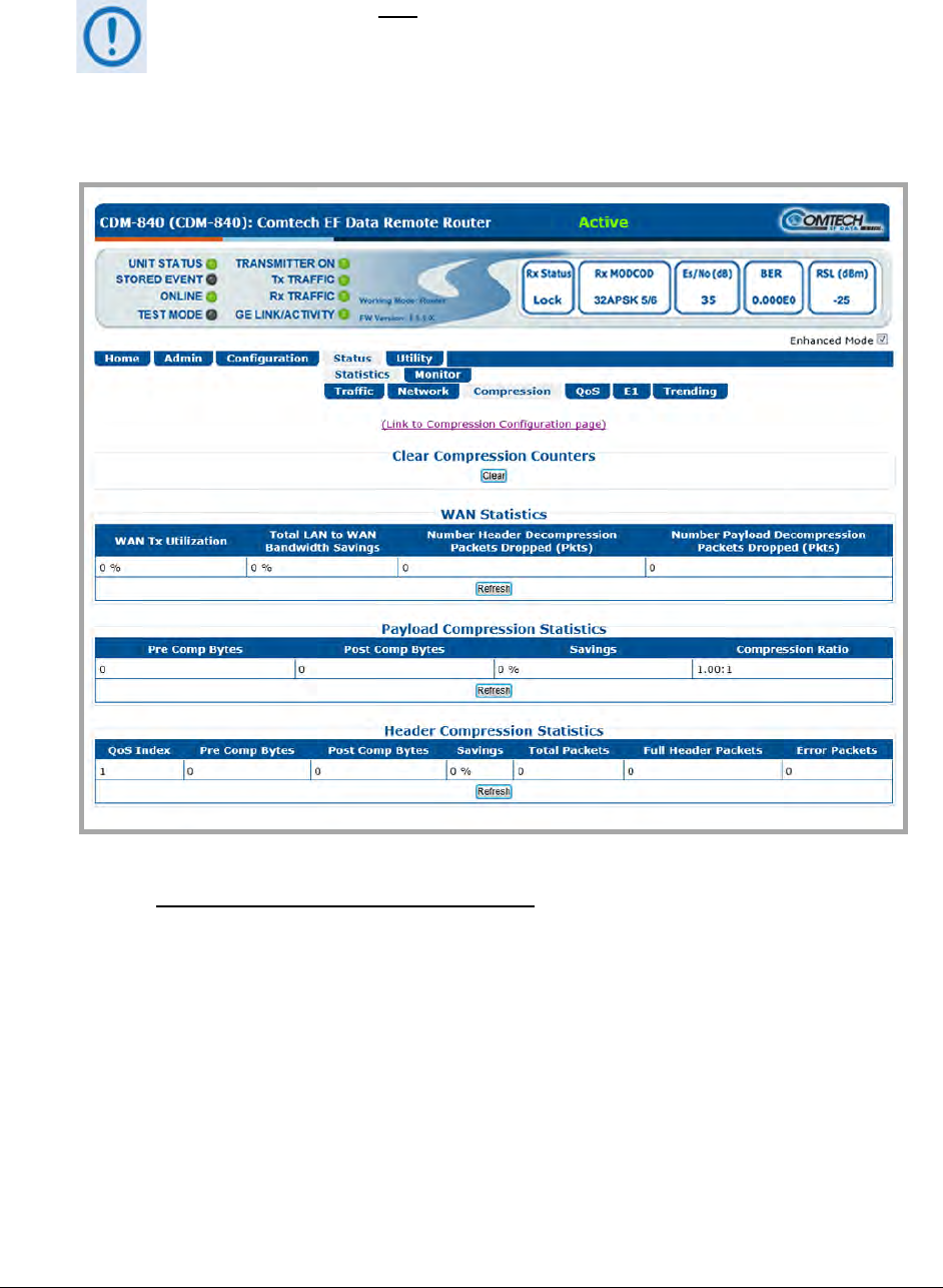 This page is functional only when Tx and Rx Header and Payload Compression are