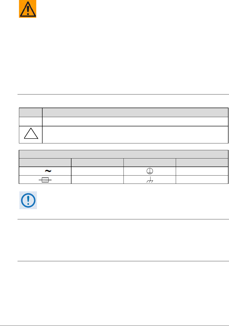 For additional symbols, refer to Warnings, Cautions and Notes listed earlier in this