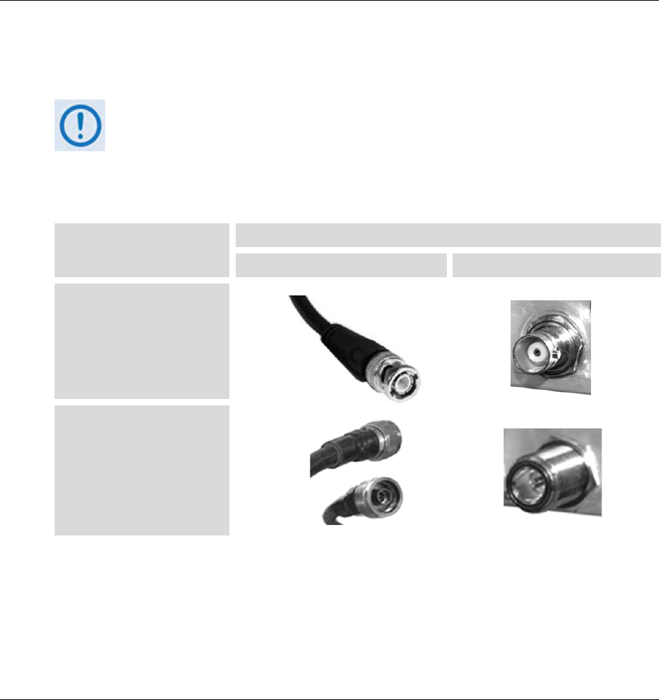 The types of coaxial cables used by Comtech EF Data are ‘BNC’, ‘TNC’, ‘N’, ‘F’, and ‘SMA’. Coaxial
