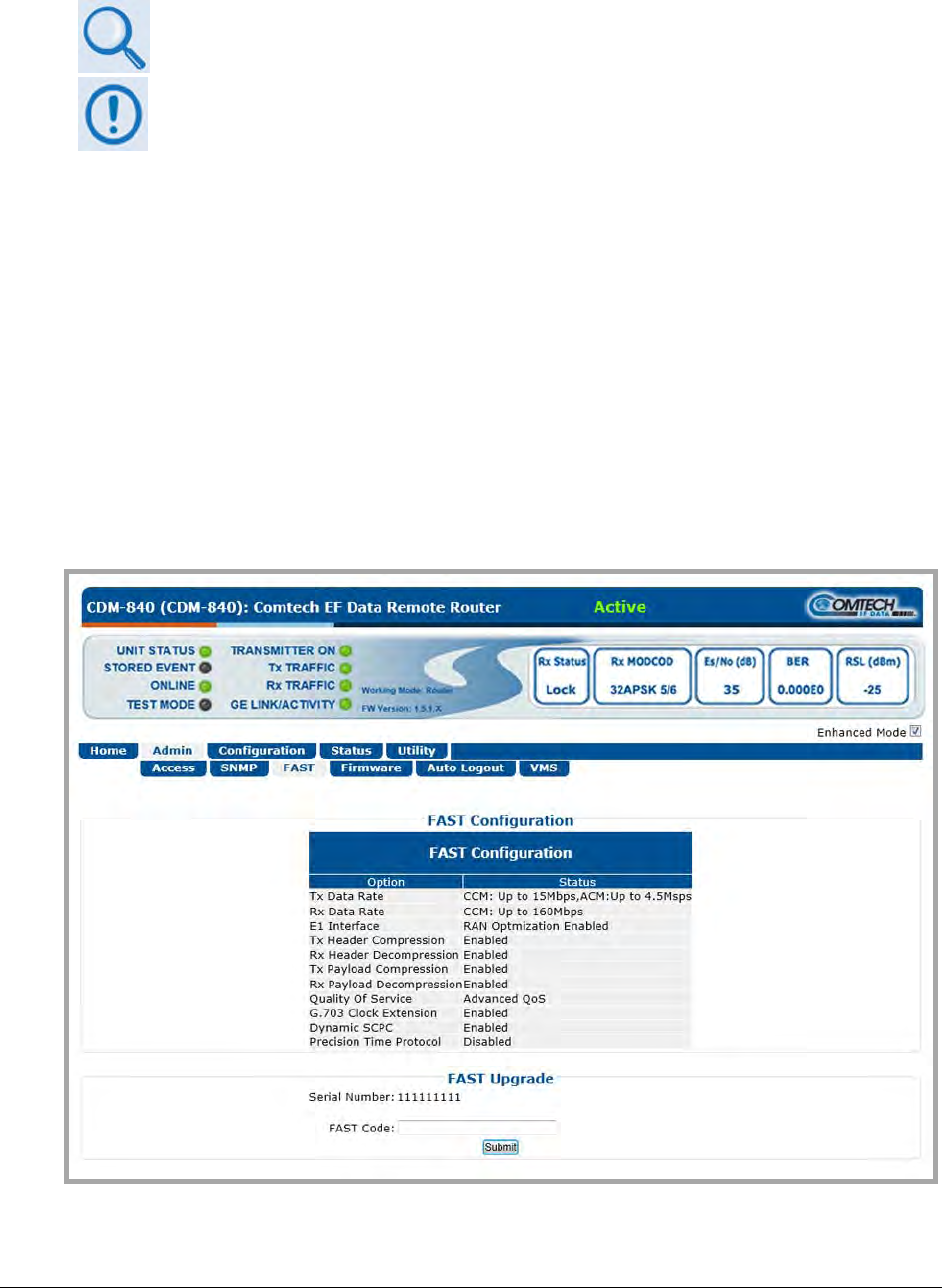 instructions for upgrading the CDM-840 Remote Router FAST features.